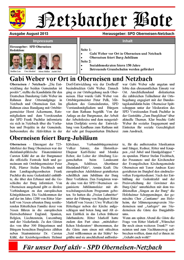 Der Netzbacher Bote 02-2013 ist erschienen. Unter 'Downloads' können Sie auch ältere Ausgaben laden.