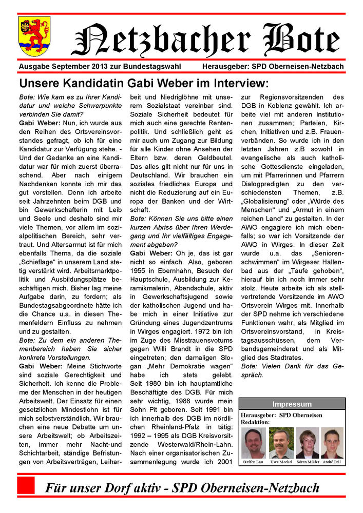 Der Netzbacher Bote 03-2013 ist erschienen. Unter 'Downloads' können Sie auch ältere Ausgaben laden.