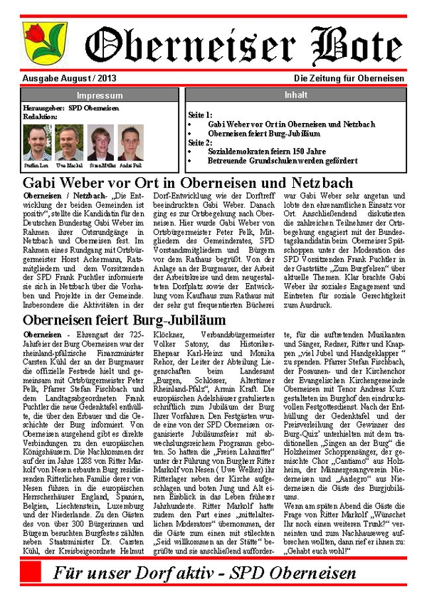 Der Oberneiser Bote 02-2013 ist erschienen. Unter 'Downloads' können Sie auch ältere Ausgaben laden.