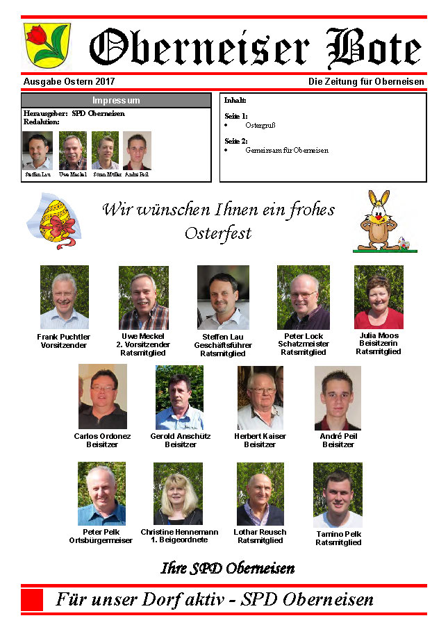 OBERNEISEN | Der Oberneiser Bote 02-2017 Ostern ist erschienen. Unter Downloads können Sie auch ältere Ausgaben laden.