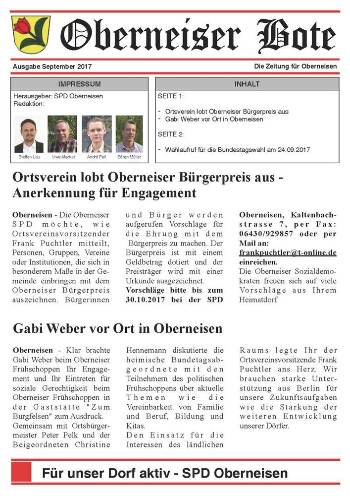 OBERNEISEN | Der Oberneiser Bote 06-2017 ist erschienen. Unter Downloads können Sie auch ältere Ausgaben laden.